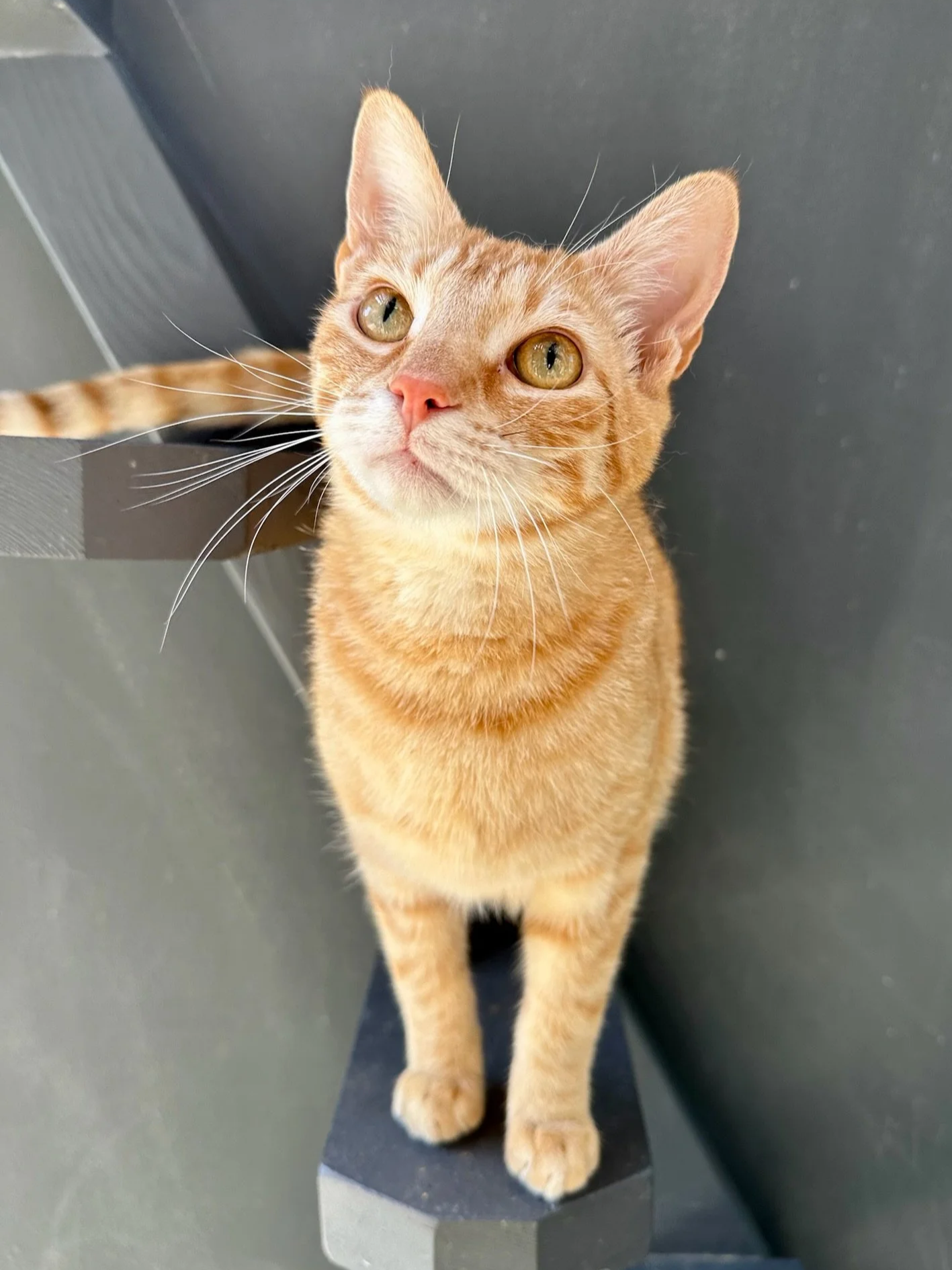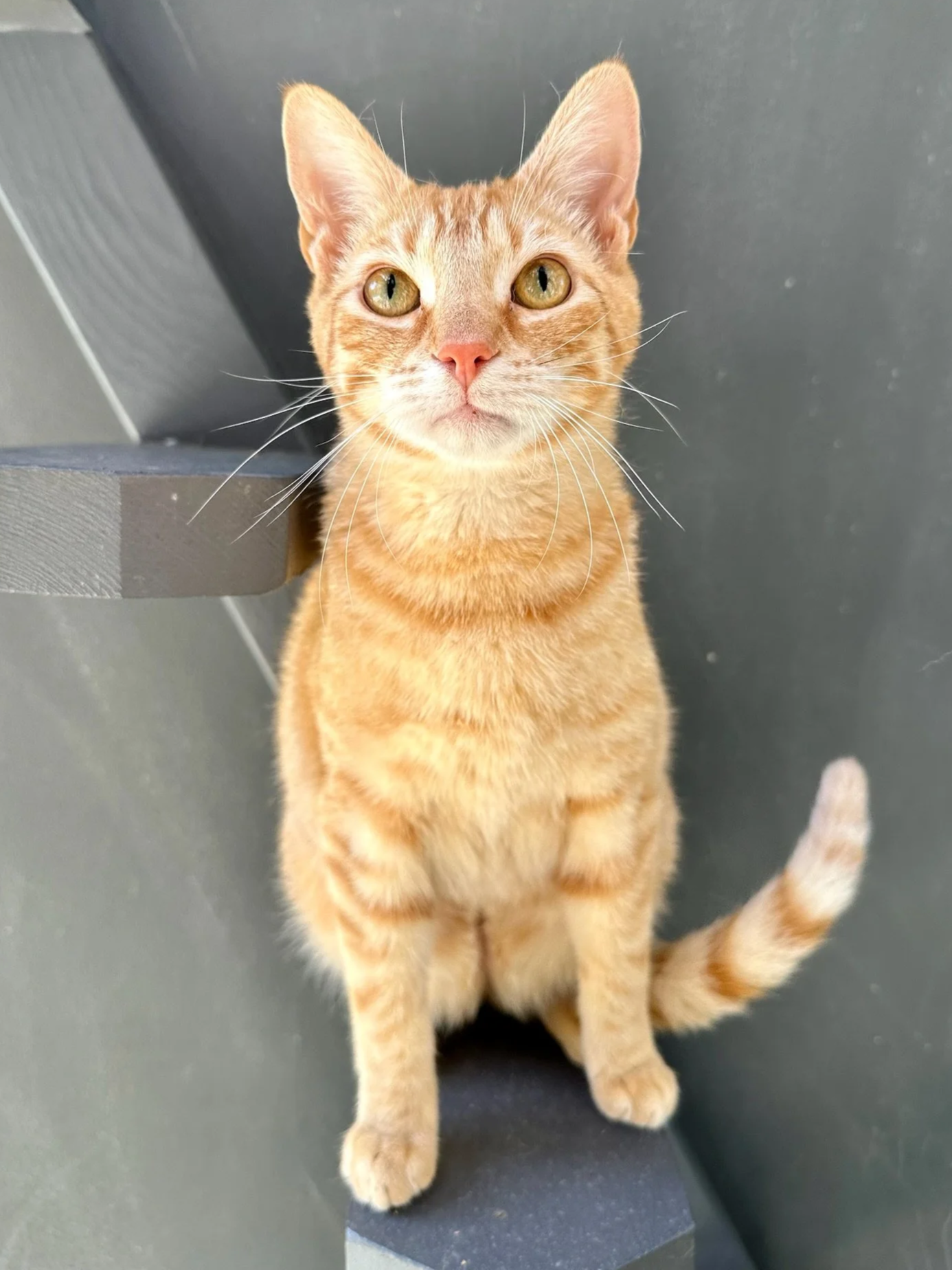 Along with his five orange tabby siblings, Percy arrived in May of 2023 in rough shape - emaciated, flea-infested, and fighting coccidia. Thankfully - and in true Percy form - he took recovery seriously and emerged exactly as you’d expect: composed, resilient, and quietly impressive. While four of his siblings were adopted in pairs, Percy (and Rhonda) stayed behind, patiently minding his manners and waiting for the right match. We’re convinced he’s been reviewing applications.