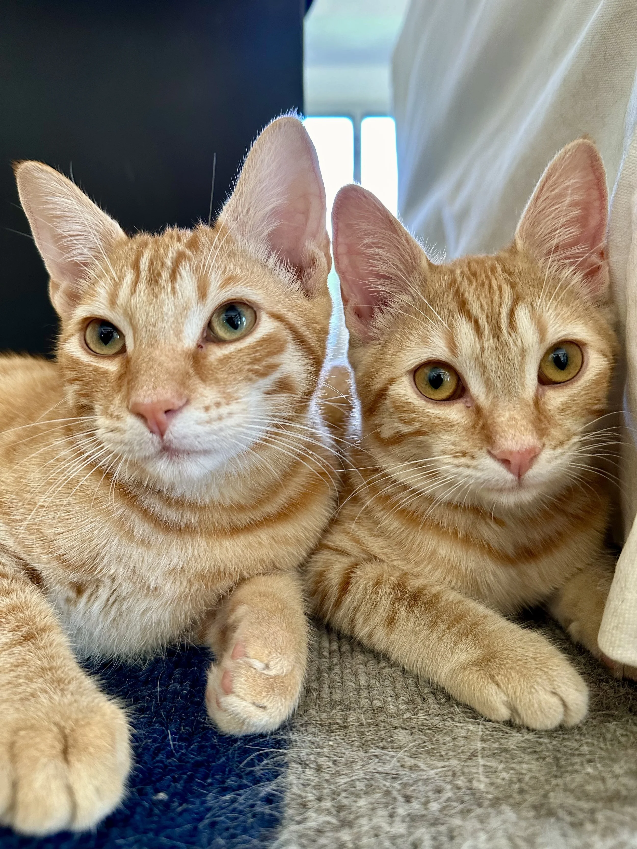 With the adoption of Ginny and George this fall, the only remaining Weasley siblings are PERCY and RHONDA, which is purrfect because these two lovebirds absolutely adore each other. When they are not engaged in their favorite activities (loafing for Percy, and gaming for Rhonda), this pair is always together, either snuggling or hurling themselves at their foster humans for attention (Rhonda is particularly adept at becoming one with the floor in front of you, should you deign to walk away before paying your respects). While they are a bit less extroverted than their siblings to start, once you've won them over they are guaranteed to be yours forevermore.
